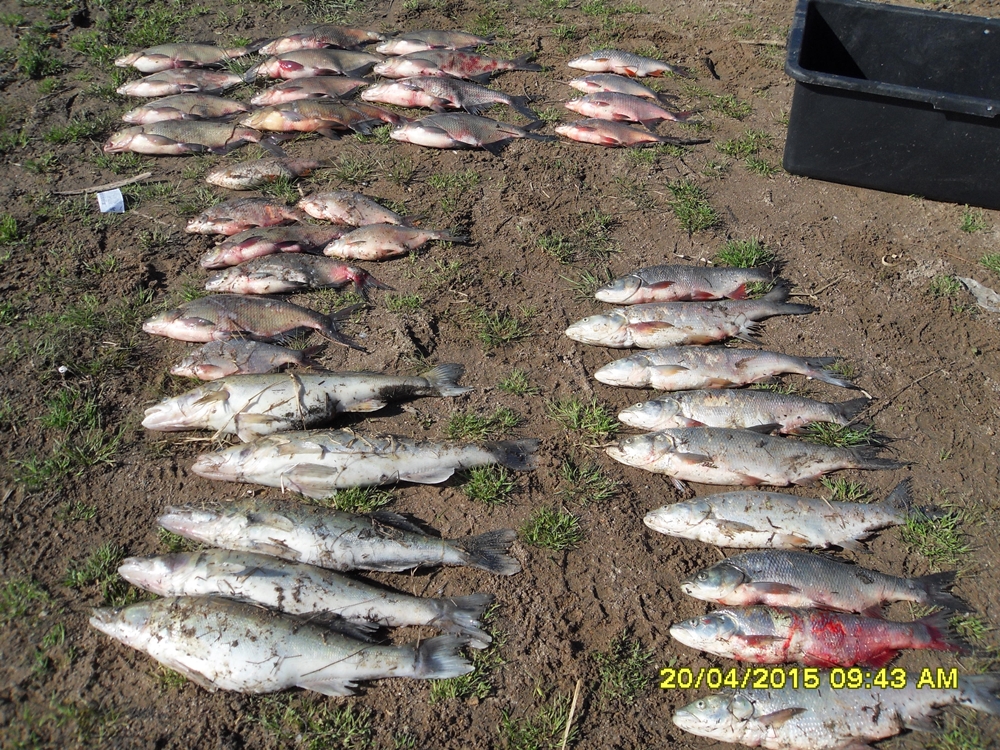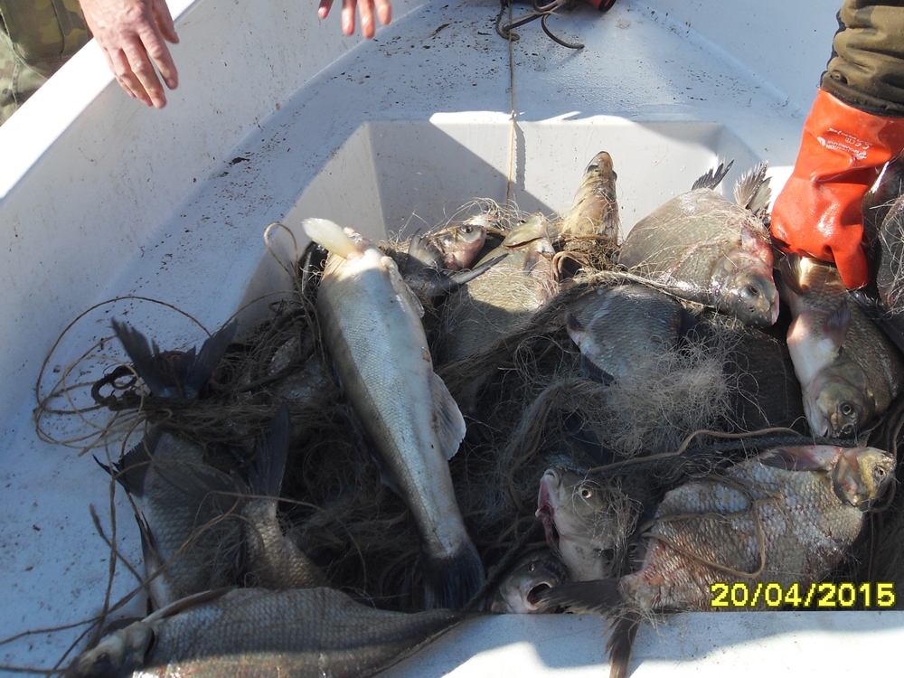 Ok. 80 metrów sieci kłusowniczej i 100 kg ryb, to wynik trałowania zbiornika Otmuchów. W sieciach od dłuższego czasu uwięzione były: leszcze (52 szt. o wym. od 40-55cm), sandacze (5 szt. od 55-57cm) oraz bolenie (9 szt. od 43-53 cm). Niestety, część ryb była już martwa, żywe ryby zostały wypuszczone do wody.