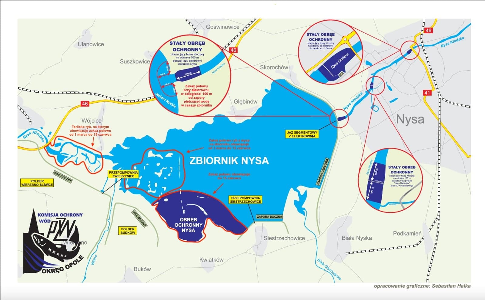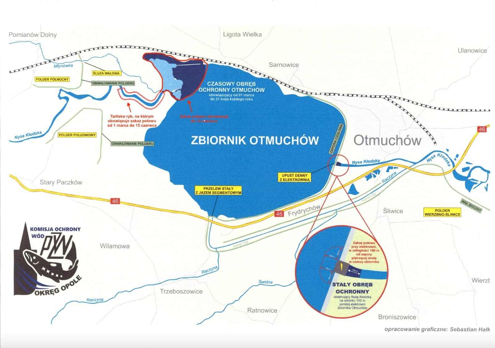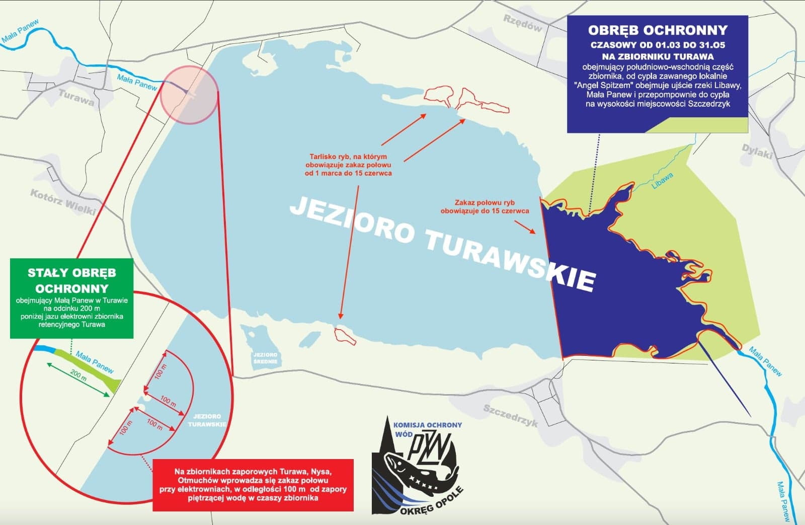 Poniżej prezentujemy mapki poglądowe z zaznaczonymi obszarami wyłączonymi z uprawiania amatorskiego połowu ryb na zbiornikach zaporowych udostępnione przez PZW w Opolu.
